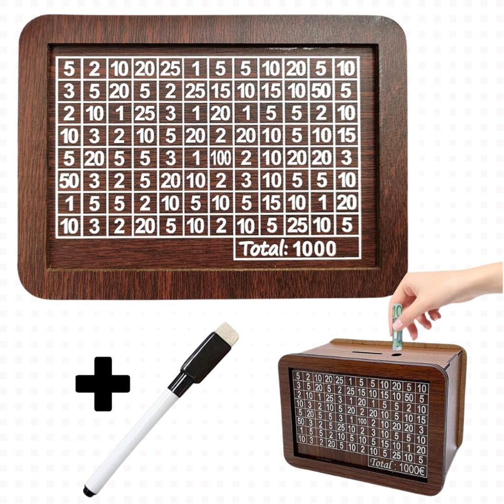 Met deze houten spaarpot wordt sparen niet alleen leerzaam, maar ook ontzettend leuk! Dankzij de handige cijfers kun je makkelijk afstrepen wat je al hebt gespaard. Het doel? €1000! Perfect voor jong én oud. De spaarpot is duurzaam en herbruikbaar – gewoon vullen, sparen en weer opnieuw beginnen zodra je het doel bereikt hebt.
